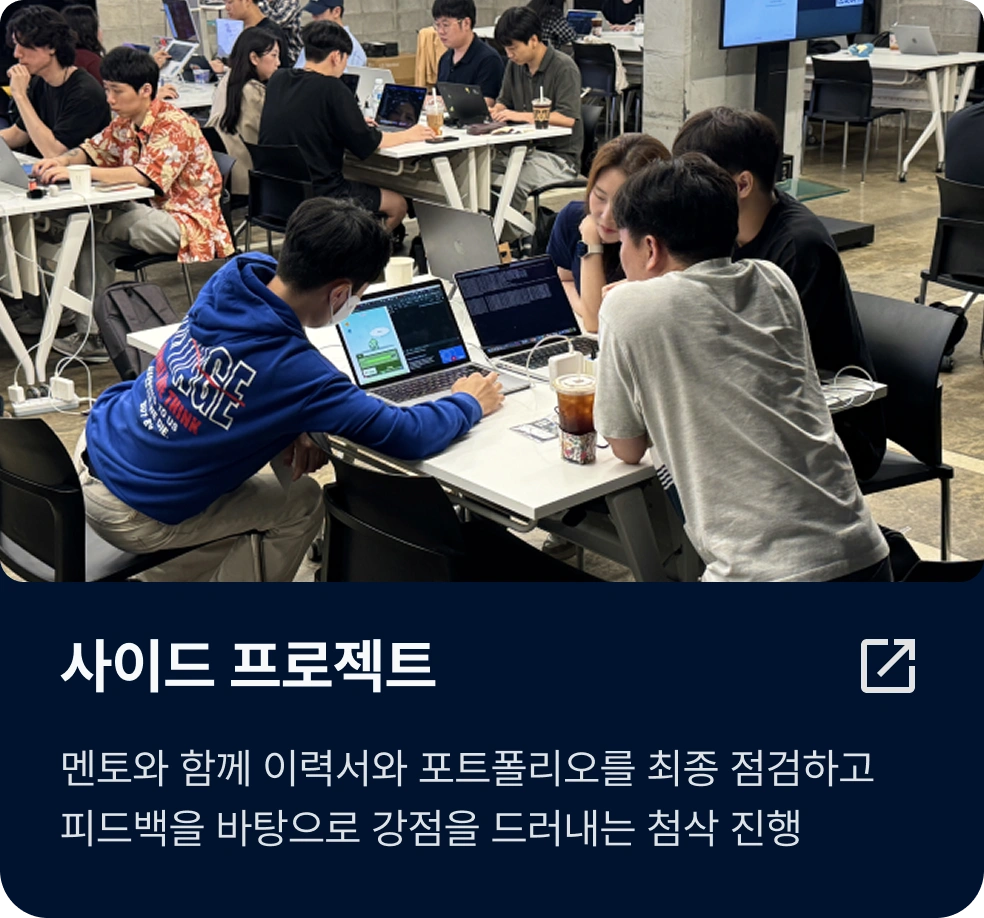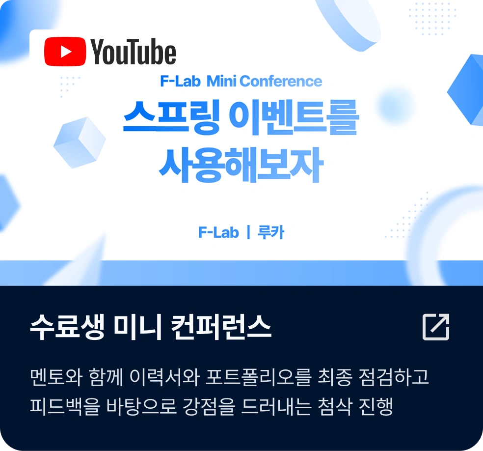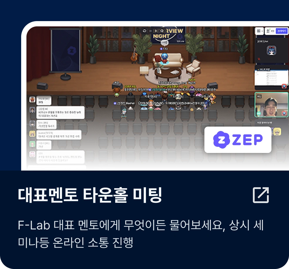 에프랩은 멘티 개인의 학습 수준과 방식에 맞춰 1:1로 멘토링을 진행하고 있습니다. 이를 통해 꾸준히 깊이있는 학습 습관을 기를 수 있으며, 멘토링이 종료되고 나서도 스스로 성장할 수 있는 기반을 갖추게 됩니다.